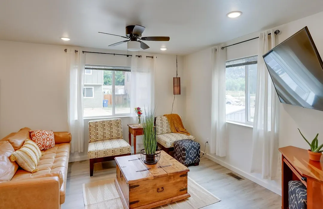 De keuken van dit gastvrije vakantiehuis is uitgerust met een oven, een kookplaat en keukengerei, en is voorzien van een eethoek buiten. Spaanse gerechten worden geserveerd bij Montezuma Mexican Restaurant, dat op op een klein stukje lopen van Dolores Townhome With Mountain Views Near River! villa ligt. De luchthaven Cortez Municipal ligt op 31 minuten rijden van deze 3-badkamer villa.